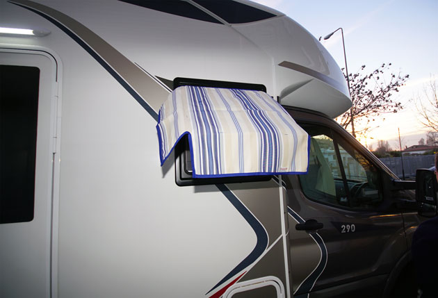 Overcoat, un copricabina integrale disponibile per tutte le meccaniche di base e realizzato su misura per i motorhome. Overcoat è un cappotto termico realizzato in tessuto 100% senza PVC, che ricopre sia il parabrezza sia il cofano motore fino a terra ed è proposto in due versioni: Overcoat + per temperature invernali fino a -15° C e Overcoat Arctic (testato fino a -35° C). Overcoat offre una soluzione estremamente efficace anche in estate grazie all’alto potere isolante del materiale coibentante e alla superficie riflettente. I prezzi per le meccaniche standard vanno da circa 320 euro a circa 400 euro. Chi vuole spendere di meno (circa la metà) può optare per il solo oscurante termico esterno del parabrezza, che ha le stesse caratteristiche funzionali del cappotto, anche se in inverno non ha le stesse performance. Un’alternativa adatta all’estate e all’inverno è il copricruscotto Cover-hood che evita, se non si utilizza lo scudo termico sul parabrezza, che il cruscotto diventi rovente e rilasci calore nell’ambiente. In inverno offre un guadagno termico di circa 10 °C. Il prezzo si aggira intorno ai 160 euro.