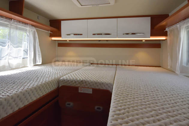7300 SB, su una lunghezza esterna di 738 cm, propone la comodissima configurazione con letti gemelli associata a un ampio soggiorno e alla possibilità di essere dotato anche di letto basculante matrimoniale.