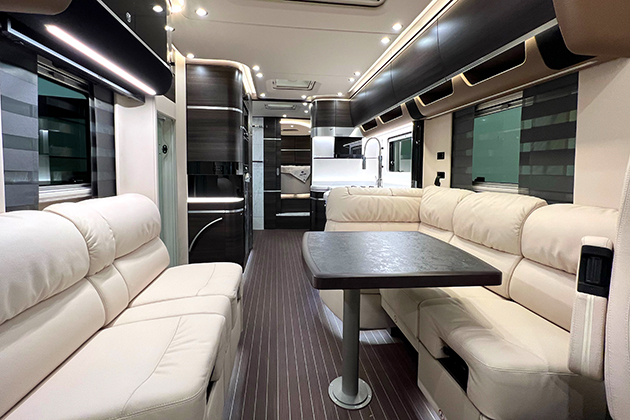 Tra quelli esposti, il modello più grande e costoso sarà il Liner 990 GI, un vero gigante della strada lungo 10 metri (999 cm per l'esattezza). Adotta la meccanica Mercedes-Benz Atego 1230L da quasi 12 tonnellate di massa complessiva. Gli interni, elegantissimi, mostrano un piacevole contrasto tra le tonalità scure dell'arredo in legno e i colori chiari dei divani in pelle. La parte posteriore del veicolo è adibita a garage, con un vano di carico capace di ospitare una piccola automobile.