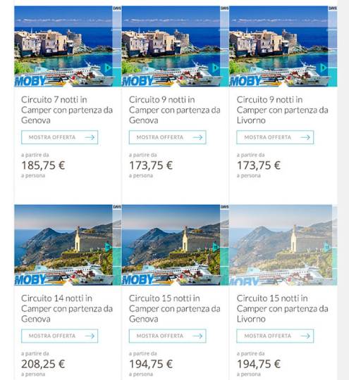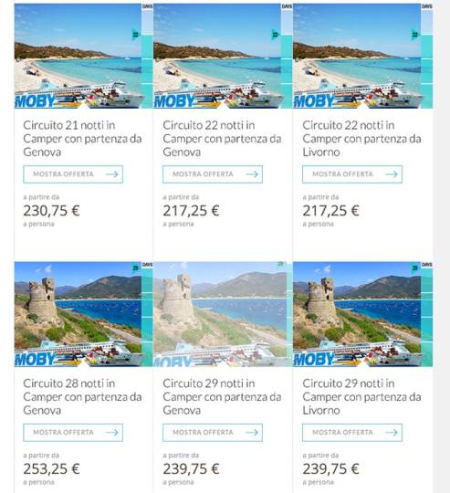 Corsica in Camper contempla Pacchetti fino a 29 notti a scelta a prezzi imbattibili, comprensivi di traversata in nave A/R in camper con partenze giornaliere o notturne da Livorno o Genova, con la compagnia marittima Mobylines, e pernottamenti nella rete dei campeggi partner, con modalità diverse a seconda della durata del soggiorno, da utilizzare liberamente.