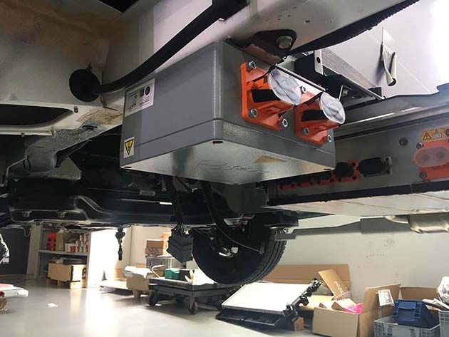 In fase di decelerazione il motore è anche in grado di produrre energia elettrica, e viene alimentato dalla batteria ad alto voltaggio installata nel sottoscocca posteriore dell’autocaravan, vicino all'asse. Per ricaricare le celle agli ioni di litio del