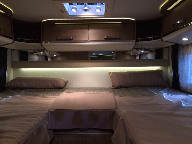 Il palcoscenico di questo esordio assoluto nel nostro Paese, sottolineato da uno stand particolarmente attrattivo e colorato (sullo stesso stile di quello ammirato al Caravan Salon) è ovviamente il Salone del Camper di Parma, dove, oltre ai furgonati fanno bella mostra di se tre modelli rappresentativi della nuova collezione: il motorhome I 440 con letto nautico centrale e i semintegrali T410, compatto con letto trasversale, e T460 con letti gemelli su 7,3 metri di lunghezza, dotato, come novità assoluta, del letto basculante a movimentazione elettrica.
