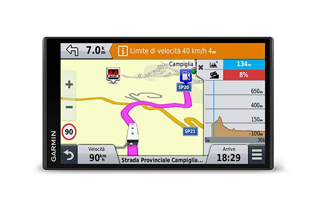 Camper 770 LMT-D ha funzioni specifiche e avanzate per camperisti, prima tra tutte quella che permette di inserire le misure del proprio veicolo: in questo modo, le tratte saranno calcolate in base all'ingobvro ed eviteranno strade che possono mettere in difficoltà. I percorsi possono poi essere programmati, oppure modificati in tempo reale in qualsiasi momento, con un semplice tocco dello schermo.
