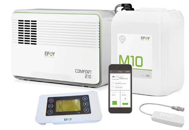 Efoy Comfort sfrutta la tecnologia delle celle a combustibile per generare corrente elettrica a 12V solo quando è necessario, mantenendo perfettamente cariche e efficienti le batterie dei servizi del camper e rendendo, di fatto, svincolati dalla necessità di collegarsi alla corrente di terra per alimentare le utenze di bordo.