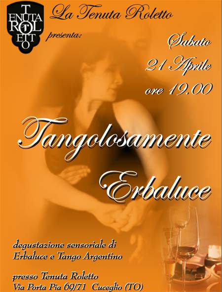 Si chiama Tangolosamente Erbaluce la simpatica iniziativa ideata per le ore 19 di sabato 21 aprile 2012 presso la Tenuta Roletto di Cuceglio, in provincia di Torino.