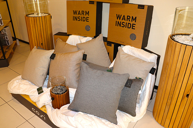 Da ultimo, la gamma di prodotti Cosi è caratterizzata da un design all'avanguardia e dalla volontà di rendere la permanenza all'esterno non solo estremamente confortevole, ma anche ricca d'atmosfera. A catalogo ci sono lanterne a gas, focolari e cuscini decorativi riscaldanti: sono pensati per essere usati in aree esterne, come nel giardino di casa e in campeggio davanti al camper.