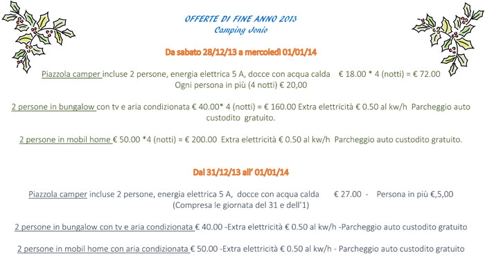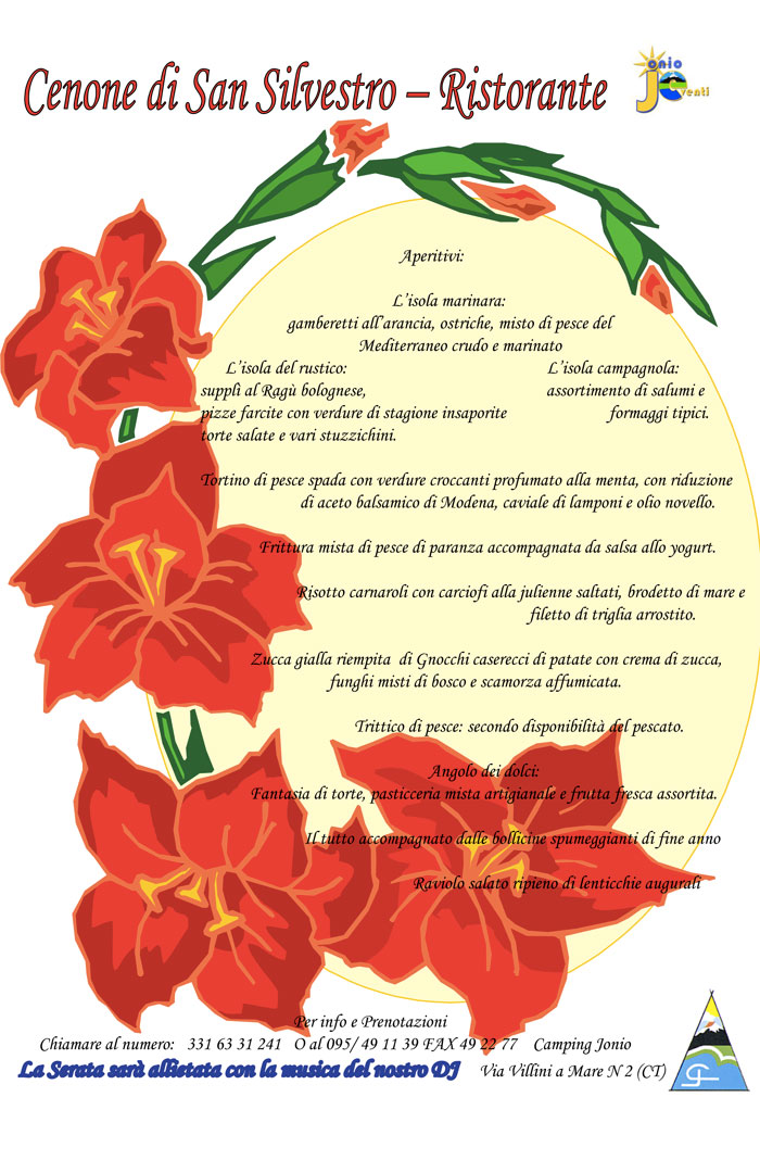 In vista dell'approssimarsi delle festività natalizie e del nuovo anno la struttura siciliana propone il cenone di Capodanno al costo di 120,00 €/persona, con menu a base di pesce e prenotazioni a numero chiuso (solo 50 persone).
