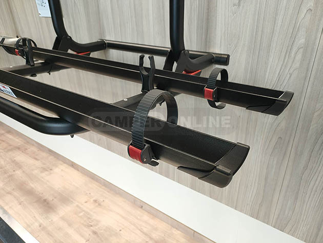 Carry Bike Pro C. Portabici ideale da istallare anche sotto la finestra posteriore del camper che, oltre ad essere tra i più compatti sul mercato, si adatta a tutte le pareti dei camper grazie alla regolazione in altezza da 40 cm a 80 cm e, per la nuova stagione, viene proposto nella nuova colorazione