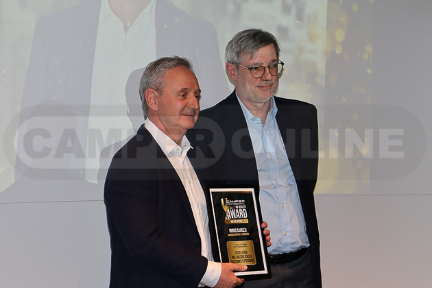 Nello specifico, i Camper Professional Legacy Award sono stati consegnati ad Antonio Garbari, agente per l’Italia dei marchi Carthago e Malibu, (Pionieri nel Commercio di Veicoli Ricreazionali), a Davide Nardini, fondatore di Project 2000 (Avanguardia e Sviluppo Tecnologico nei Veicoli Ricreazionali) e al nostro Paolo Bertino, fondatore di Camperonline (Pionieri della Comunicazione digitale nel Caravanning).