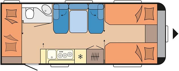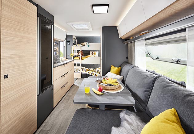 Maxia 595 KML, offre invece fino a 7 posti letto. Ma questo layout offre più di nove usi diversi grazie a un'area multifunzionale: in poche mosse è possibile installare e rimuovere fino a tre letti per bambini con poche semplici operazioni. È altrettanto facile creare un angolo per i giochi, una zona salotto per i bambini, un rifugio per gli amici a quattro zampe o uno spazio per i bagagli. I modelli della serie