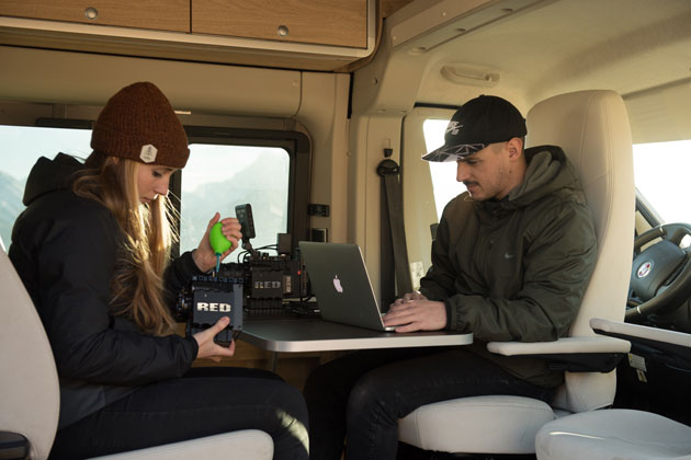 il furgonato Hymercar è stato fondamentale, la base ideale per lavorare al computer e raccogliere le idee dopo le faticose giornate di riprese. Non ultimo, ci ha fornito un riparo comodo e caldo dal rigido freddo della Francia e Scozia”.