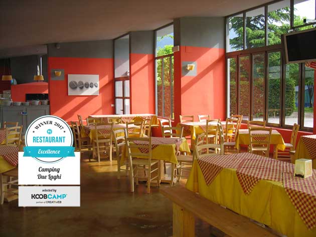 Camping Due Laghi sarà insignito di targa e adesivo che KoobCamp riserva al Campeggio-Villaggio con il Miglior Ristorante del 2017.