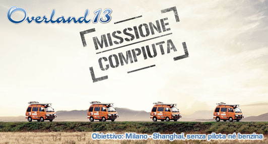 La spedizione Overland 13 capeggiata dal mitico organizzatore Beppe Tenti è partita da Milano il 20 luglio 2010 con l’obiettivo di arrivare in Cina e più precisamente a Shanghai il 28ottobre, giorno i cui si concludeva l’Expo mondiale che nel 2015 si svolgerà a Milano.