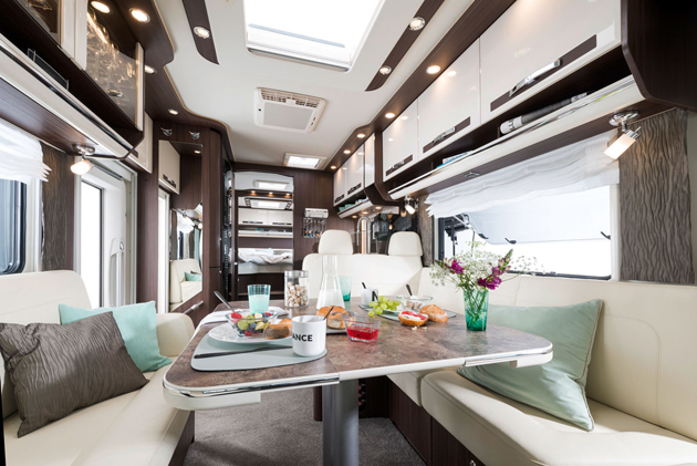 Morelo se diretti verso un Morelo Empire Liner. Sebbene sia un veicolo notevole con un design interno molto spazioso, i costruttori di Schlüsselfeld sono comunque riusciti ad aggiungere qualcosa al top: d’ora in poi questo lussuoso Liner potrà essere richiesto anche con uno slide-out che creerà un effetto spazio unico e particolare.