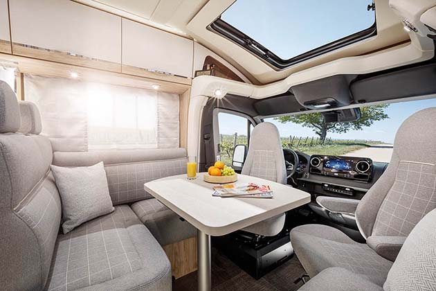 Come da tradizione della casa, i nuovi Profila T su Mercedes sono pensati per affrontare al meglio la vacanza invernale. Traggono beneficio infatti dal doppio pavimento (19,5 cm di spessore) e dal sistema di riscaldamento ad acqua Alde, una sintesi perfetta per chi cerca un ottimo comfort climatico anche nella stagione fredda.