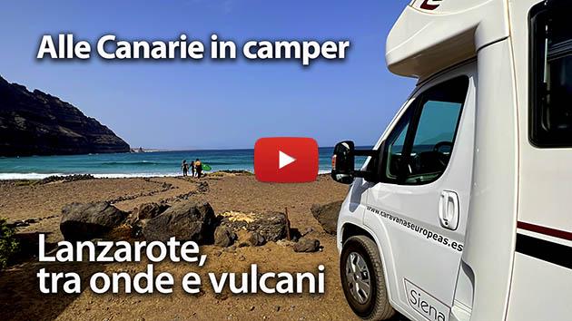 Viaggio in camper alla scoperta dell'affascinante arcipelago delle Canarie è dedicata all'isola di Lanzarote, conosciuta anche come l'isola dei vulcani. A bordo di un semintegrale compatto GiottiLine Siena 330 scopriremo alcune delle più importanti attrazioni turistico-culturali dell'isola, ci immergeremo nelle sue bellezze naturalistiche davvero mozzafiato e ci rilasseremo in alcune delle sue più scenografiche spiagge, spesso dormendo accompagnati dal suono delle onde.