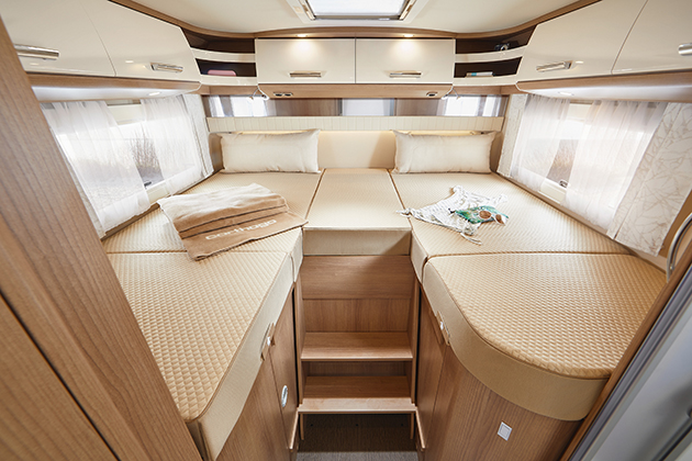 C-tourer 145 LE RB offre una soluzione abitativa molto confortevole, con una pianta tipica di semintegrali e motorhome di maggiori dimensioni. A bordo infatti troviamo una generosa zona notte con letti gemelli e un bagno sdoppiato, con la cabina doccia indipendente dal vano toilette.