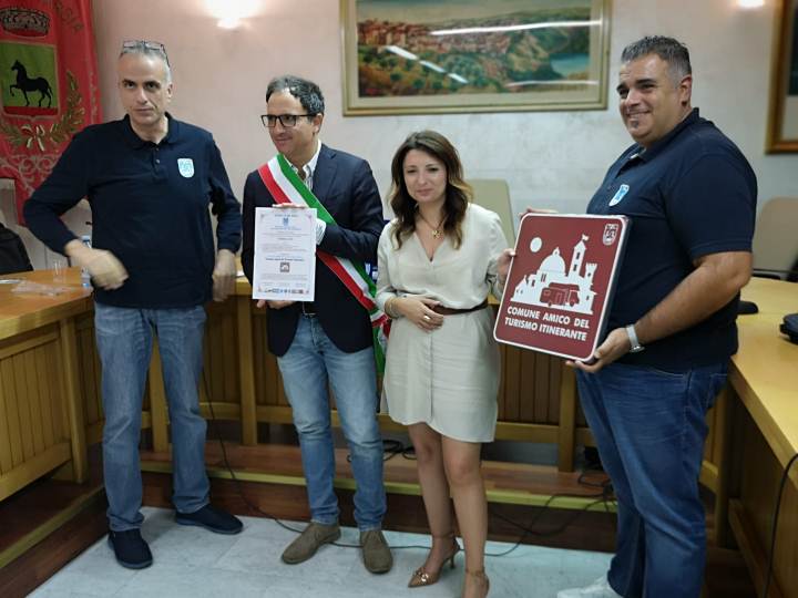 Tarsia (CS) come Comune Amico del Turismo Itinerante. Durante l’incontro, organizzato dall’Amministrazione comunale e dall’UCA, si è svolta la cerimonia di consegna dell’Attestato C.A.T.I. e della cartellonistica da esporre nei punti nevralgici del Borgo.