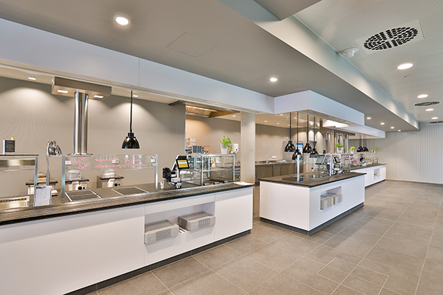 Al piano terra dell’edificio, i dipendenti di Carthago City possono beneficiare di un nuovo ristorante aziendale, arredato con materiali naturali. Nei mesi estivi, gli impiegati possono altresì utilizzare gli ampi spazi comuni e di svago all’aperto.