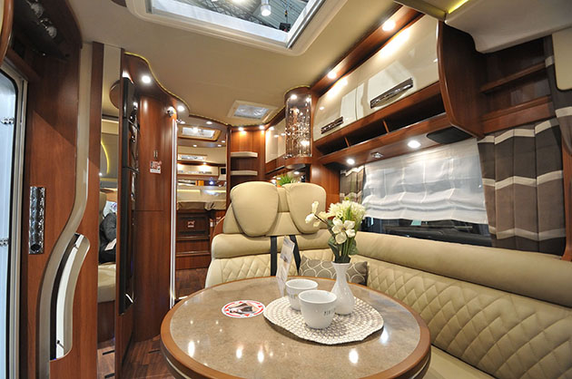 Allestiti sulla meccanica Fiat Ducato con telaio AL-KO mono o biasse, offrono i layout con letto trasversale, letti gemelli o letto centrale posteriore, toilette passante in ambienti indipendenti, grandi gavoni garage e doppio pavimento passante di grande ampiezza con elevate capacità di stivaggio.