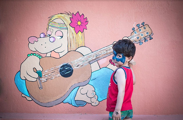 L’energia creativa si libera anche all’esterno delle sistemazioni con numerose altre opere d’arte murali, diffuse nell’intera area del Villaggio. Entrambi i Villini sono dipinti interamente a mano libera dall’artista autoctono