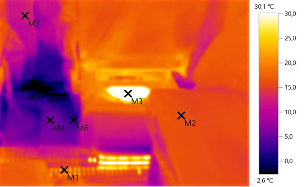 Nella prima fase, il veicolo è stato raffreddato nella camera fredda per tutta la notte, con porte e finestre aperte, ad una temperatura di -15° C. Nella fase successiva, è stato acceso il riscaldamento Alde (di serie su tutta la serie Kreos profilati 5000) mantenendo la temperatura esterna a -15°, con l’obbiettivo di misurare il tempo impiegato dal veicolo per arrivare ai 20° C nell’area living.