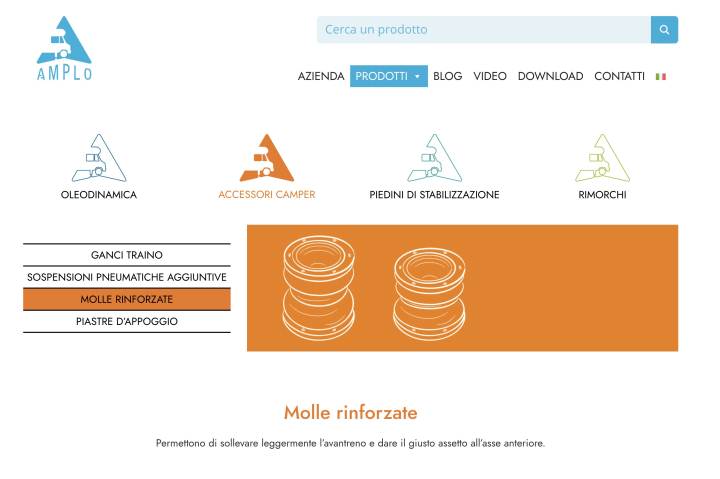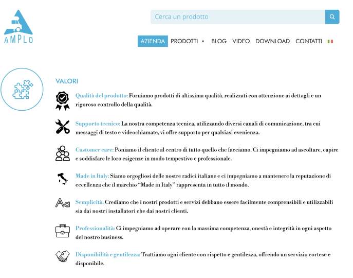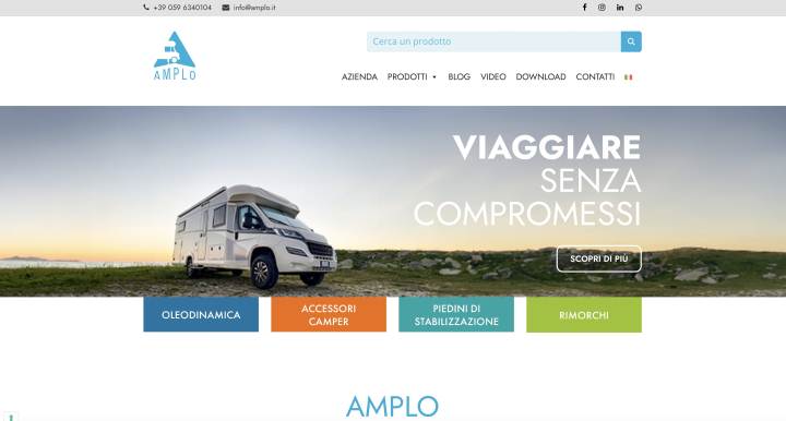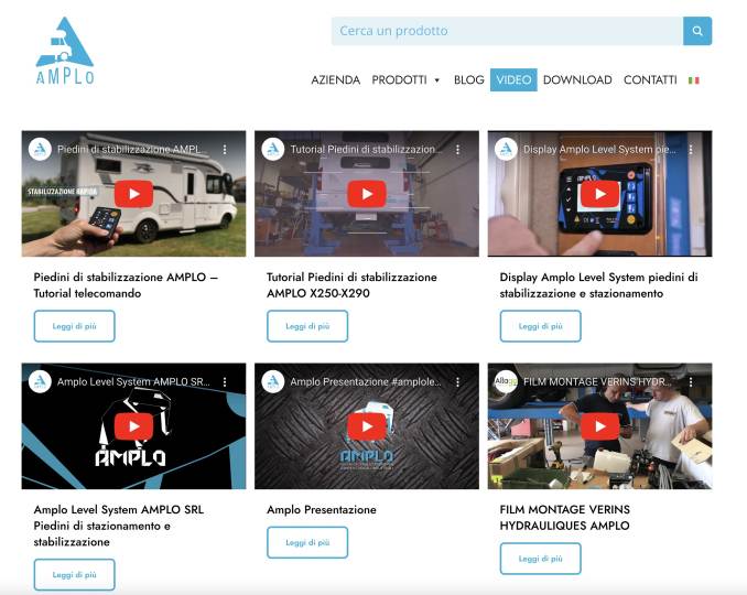www.amplo.it, con l’obiettivo di fornire all’utente finale tutti gli strumenti per conoscere l’azienda, approfondire i dettagli dei vari prodotti a catalogo e di ottenere assistenza tecnica, anche in formato video.