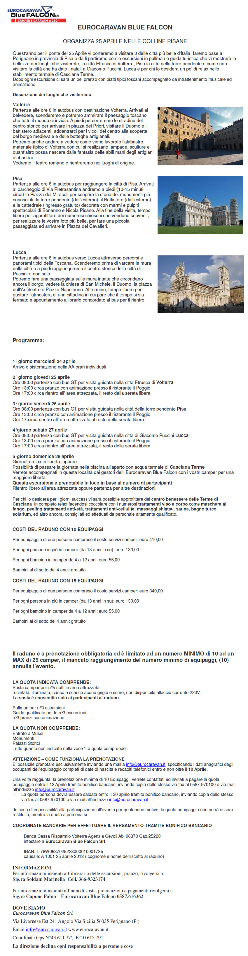Eurocaravan Blue Falcon vi porta a Volterra, Pisa e Lucca...
