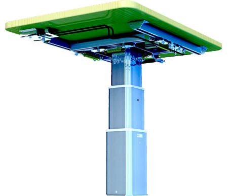 Si tratta di un sostegno telescopico in profilati d'allumino, con tre elementi rientranti a cannocchiale, dotato di meccanismo elettrificato di movimentazione azionabile mediante pulsante. La motorizzazione adotta uno speciale dispositivo che assicura un’estensione omogenea di tutti gli elementi, con una velocità di 18 millimetri al secondo. Il peso è contenuto, circa 6 kg, e la portata è di 60 kg.