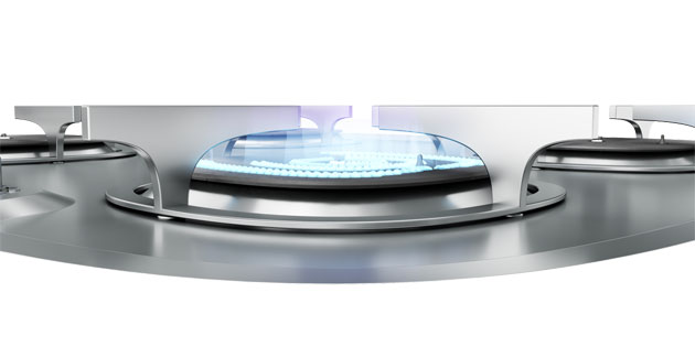 Record del nuovo bruciatore, infatti, è la corona minima centrale con potenza 400 W, che non esisteva fino ad oggi nel piano cottura a gas, e che consente, senza dispersioni di fiamma, di accogliere anche le pentole più piccole, come le caffettiere monodose. «