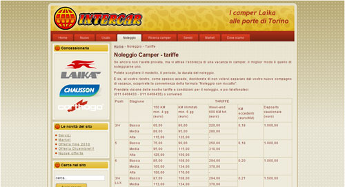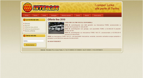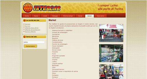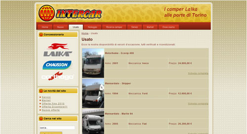 Articolato in sezioni, il sito permette al visitatore di cercare il proprio veicolo ricreazionale tra i marchi rappresentati (Laika, Chausson e Carthago) avendo anche la possibilità di sapere quali modelli dei rispettivi marchi sono presenti in concessionaria e, di conseguenza, visionabili e immediatamente disponibili. Sempre per quanto riguarda i veicoli ricreazionali nuovi, non manca una sezione dedicata alle offerte sui veicoli fine serie, mentre la pagina dei veicoli ricreazionali usati presenta le occasioni disponibili arricchendo la descrizione con una ricca fotogallery.