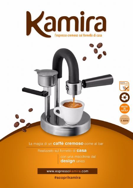 Piccola e geniale, Kamira, è una macchina che in meno di 30 secondi e su qualsiasi fonte di calore, è n grado di produrre un caffè espresso cremoso come al bar con standard qualitativi molto elevati.