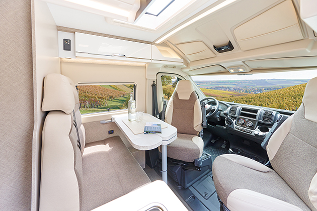 Il living è classico, con la semi-dinette e le poltrone girevoli della cabina. Gli occupanti possono trarre vantaggio dalla soluzione open space, senza la cappelliera sopra la cabina, che rende l'ambiente più arioso e agevola i movimenti.