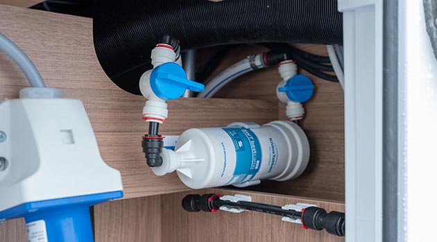A partire, quindi, dal "model year 2020", l'acqua nei veicoli di Knaus Tabbert sarà filtrata, e quindi pulita e piacevole da gustare. Inoltre, le attrezzature come le macchine da caffè saranno efficacemente protette contro la calcificazione. Effetto collaterale positivo: ci saranno meno macchie di calcio nella doccia e nel lavandino.