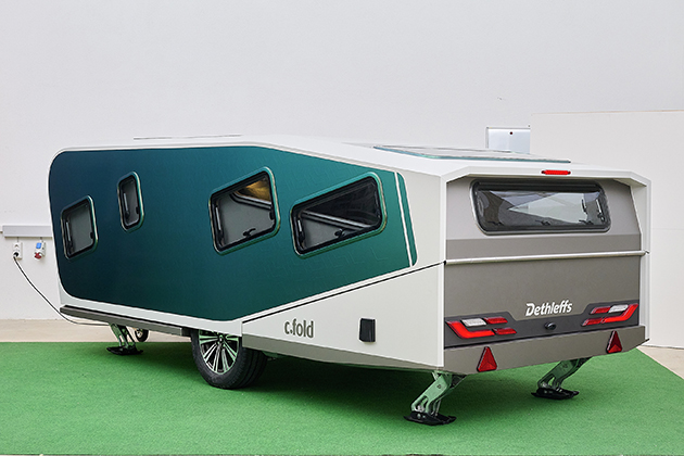 Dethleffs ha già utilizzato questo materiale innovativo, ricavato da bottiglie di PET riciclate, nel suo concept di camper e.home ECO, così come il pavimento in linoleum realizzato con materie prime rinnovabili. Pannelli solari per la produzione di energia sono installati sul tetto del veicolo. A bordo sono presenti anche un inverter da 2.000 watt e due batterie agli ioni di litio da 150 Ah. Il sistema di movimentazione integrato semplifica il parcheggio sia in movimento che in sosta. Il concept caravan è inoltre dotato di aria condizionata. Nonostante queste raffinatezze tecniche, il c.fold pesa solo 775 chilogrammi. "Con c.fold, stabiliamo nuovi standard per il futuro del caravanning. Il nostro obiettivo è quello di portare sul mercato soluzioni innovative anche nei prossimi anni, per essere all'altezza del nostro ruolo di pionieri nel caravanning", spiega Bernhard Kibler, CEO di Dethleffs. "c.fold è un altro passo importante verso la sostenibilità e il comfort dei viaggi con veicoli elettrici e verso la realizzazione della nostra visione della 'destinazione turistica del futuro'".