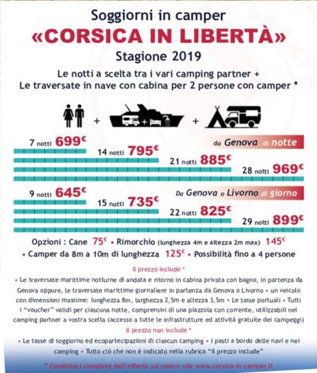 Le offerta di Corsica in Camper contemplano Pacchetti da 7 a 29 notti a scelta a prezzi imbattibili, comprensivi di: