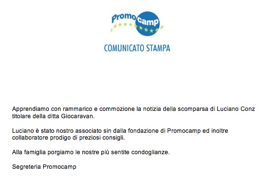 CamperOnLine.it si associa al cordoglio per la prematura scomparsa di Luciano Conz.