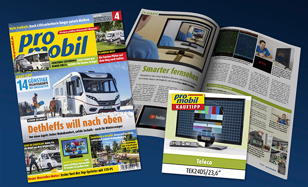 promobil sul numero 4 di aprile 2021 dopo aver condotto un approfondito test su otto televisori specifici per camper e caravan di alcuni marchi europei, ha assegnato allo Smart TV