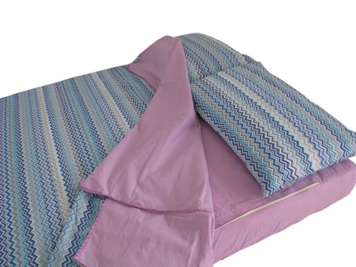 Caldo Sonno, il copripiumino che abbina un lenzuolo inferiore con elastici, un lenzuolo superiore bordato in raso e un copripiumino/copriletto completo di cerniere lampo per offrire la massima praticità di utilizzo grazie alla componibilità dei diversi elementi e uno stile completamente personalizzabile.