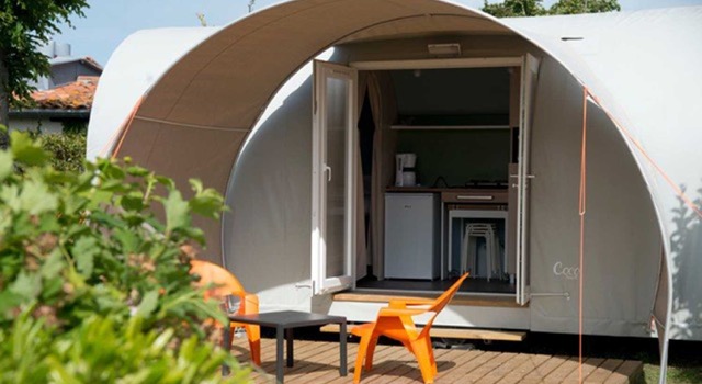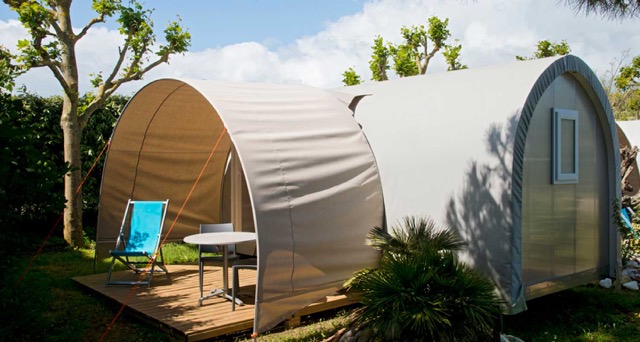 Cocotenda che ospita fino a 4 persone: ideale per le famiglie e per piccoli gruppi di amici, la Cocotenda trasforma l’idea classica del campeggio in tenda in un’esperienza nuova ed appagante, nata sulla scia del fenomeno Glamping, con tutte le comodità dentro e furi dalla sistemazione. Sempre al Camping La Rocca, inoltre, i maxicaravan panoramici