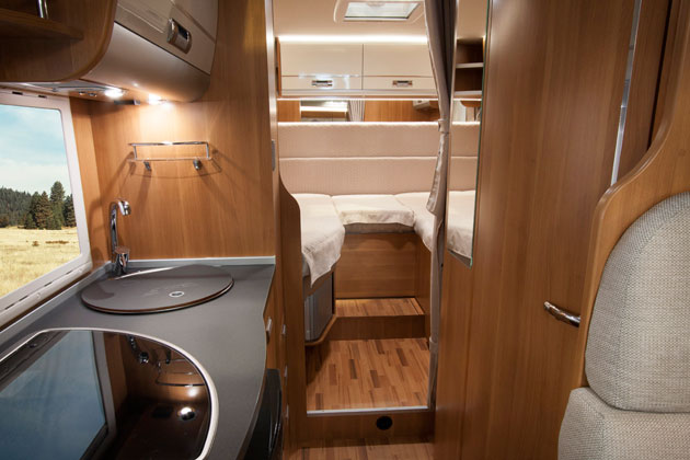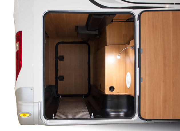 Studiato per offrire massima capacità di stivaggio e abitabilità, grazie ai letti posteriori regolabili elettricamente di serie (che consentono di trasportare in garage anche una moto), l’armadio con asta appendiabiti e cassetti sottostanti, per portare in viaggio tutto il necessario senza sacrificare spazio, e la dinette a L di 1,35 m di profondità con seduta laterale destra, per ospitare gli amici in totale comodità.