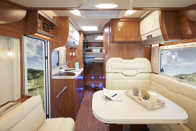 luce indiretta sopra e sotto i pensili, a filo parete, sul pavimento e sotto il piano cucina, garantisce un’illuminazione funzionale ed omogenea. I veicoli Laika sono particolarmente confortevoli anche nelle ore serali, per rilassarsi con gli amici, leggere un libro, studiare l’itinerario del giorno successivo o preparare una bella cena. La