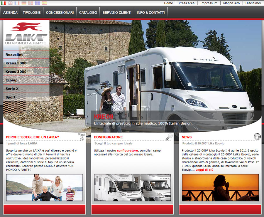 Da evidenziare, come interessante utilità, la possibilità di ricercare il proprio camper ideale, inserendo le caratteristiche desiderate, la possibilità di sfogliare il catalogo Laika e di comparare i vari modelli della vastissima gamma Laika.