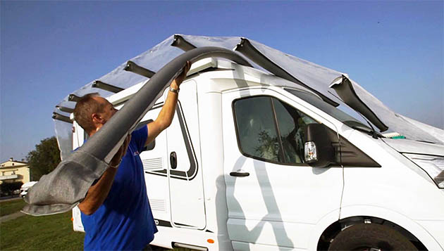 Sempre al passo con le nuove tendenze del mercato, Larcos propone varie soluzioni dedicate agli utilizzatori, sempre più numerosi ed entusiasti, del van. Nello specifico, di van con il comodo letto sempre pronto inserito nel tetto a soffietto. Com’è noto, questo tipo di comoda “appendice” risente però delle situazioni climatiche più rigide, in quanto costituita da pareti in tela. Ebbene, Larcos propone la Protezione termica interna per tetti a soffietto, composta da un telo isolante in un unico pezzo. In molti soffietti non serve smontarlo, il tetto si richiude comunque con il telo montato.