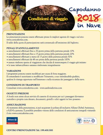 Corsica Sardinia Ferries potrete scegliere tra la bella Corsica, la romantica Costa Azzurra, la colorata Provenza e l’affascinante Sardegna, per trascorrere un insolito ed emozionante Capodanno a bordo, tra brindisi, giochi, musica, buona cucina e un servizio impeccabile.