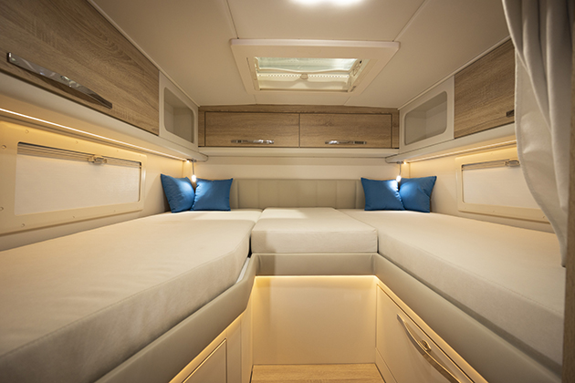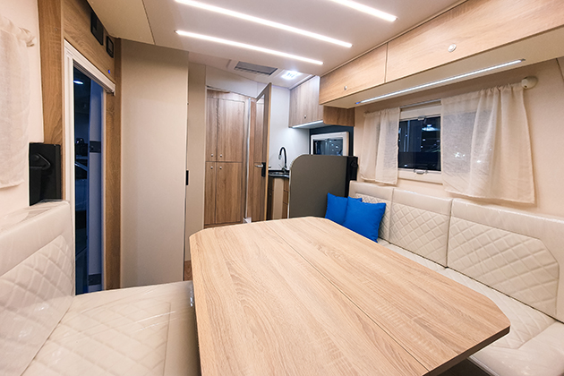 Invariate le ottime performance di coibentazione termica della monoscocca: per certificare le elevate capacità termiche sono stati svolti test nella camera climatica Truma replicando condizioni di freddo estremo (-15°C per 12 ore a veicolo spento). Accendendo la stufa il camper ha raggiunto una temperatura interna di 20°C, obiettivo del test, in un tempo di sole 3 ore, rispetto alle 4 previste dalle norme base, mantenendo oltre 35°C di differenza tra clima interno e esterno. Ottima anche l’uniformità del calore all’interno, così come la tenuta dei serbatoi e dell’impianto idraulico.