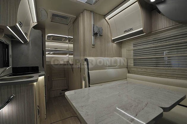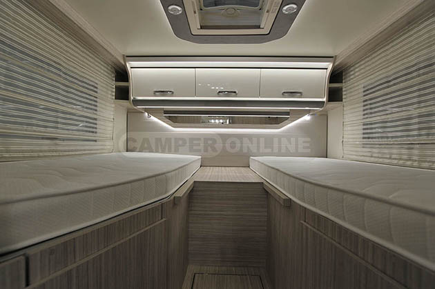 Elnagh T-Loft 529 e Magnum 529, un profilato e un motorhome che condividono la stessa pianta caratterizzata dalla presenza dei letti gemelli in coda su gavone garage in una lunghezza inferiore ai sette metri. L'allestimento si completa poi con la cucina lineare dotata di frigorifero a colonna e il locale toilette in un unico ambiente con doccia separata al suo interno.