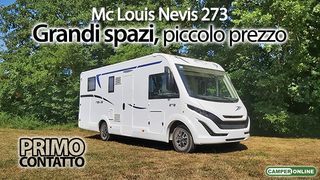 Il McLouis Nevis 273, novità della stagione 2022,  è un motorhome dal prezzo invitante. Grazie ad una lunghezza prossima ai 7 metri e mezzo riesce a garantire spazi abitativi generosi e un garage di buona volumetria. L'abitacolo si caratterizza per la zona notte con letti gemelli e bagno sdoppiato.