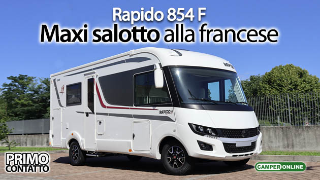 Il nuovo Rapido 854F è un motorhome caratterizzato da uno schema abitativo insolito: grande living posteriore molto conviviale e solo due posti in cabina, a cui si aggiungono l'ampia cucina e il bagno trasformabile. La lunghezza si ferma a 670 centimetri.