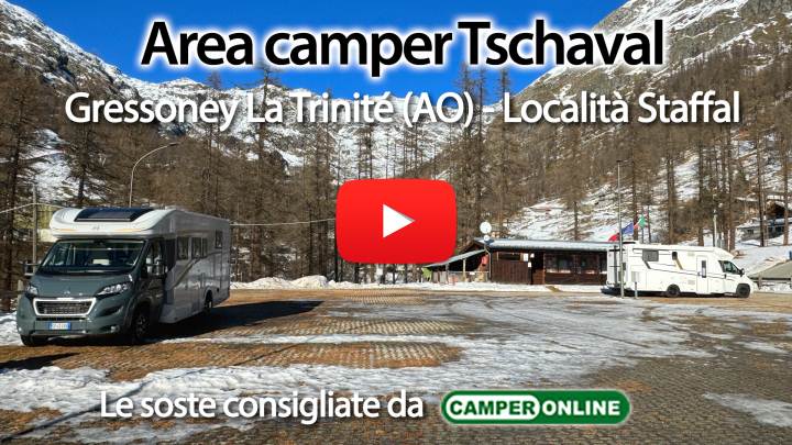 area segnalata, pianeggiante, adiacente gli impianti di risalita, con 36 posti dotati di colonnina per l'elettricità. Carico e scarico, servizi igienici riscaldati, lavelli con acqua calda, servizio bombole gas. Vicina al centro della frazione, impianti raggiungibili a piedi, noleggio sci e attrezzature neve a 50 m, nei dintorni funivia che porta in cima alla montagna per fare sport invernali e escursioni.